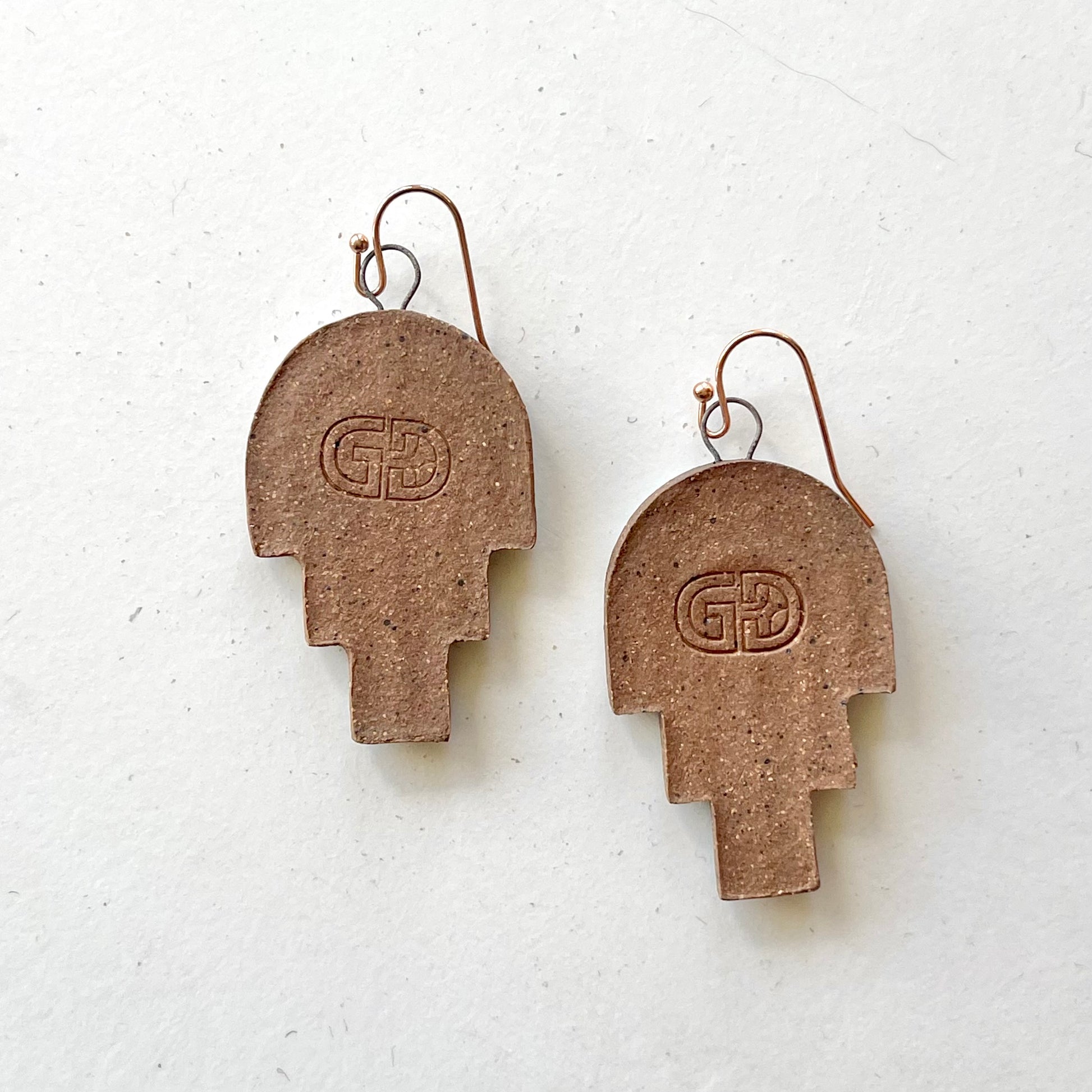 Handmade retro-inspired earrings glazed in vibrant blues over a dark brown clay body.